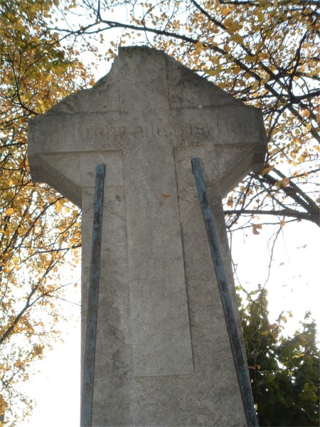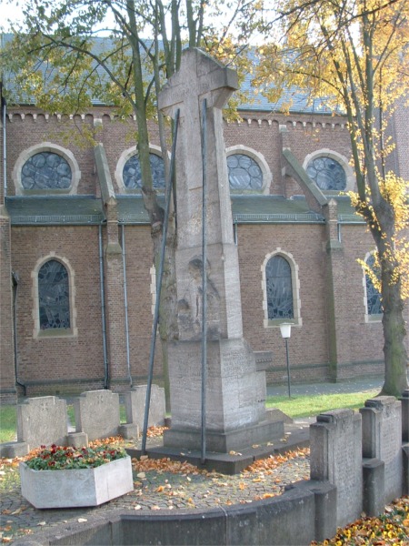 Gemeinde Arnoldsweiler. Das große Steinkreuz zeigt auf der Vorderseite ein