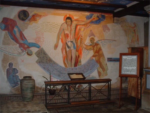 Heil“, darunter befindet sich ein Christusbildnis? mit der Inschrift: „Betet