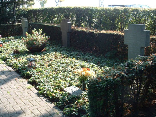 Auf einer kleinen Ehrenanlage auf dem Derichsweiler Friedhof sind drei deutsche Kriegstote,