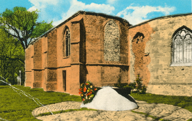 und stand ursprünglich an der Ruine der im Zweiten Weltkrieg zerstörten alten Pfarrkirche St. Martin (Bild links). Das Denkmal wurde 1984 am heutigen Standort vor der neuen Kirche