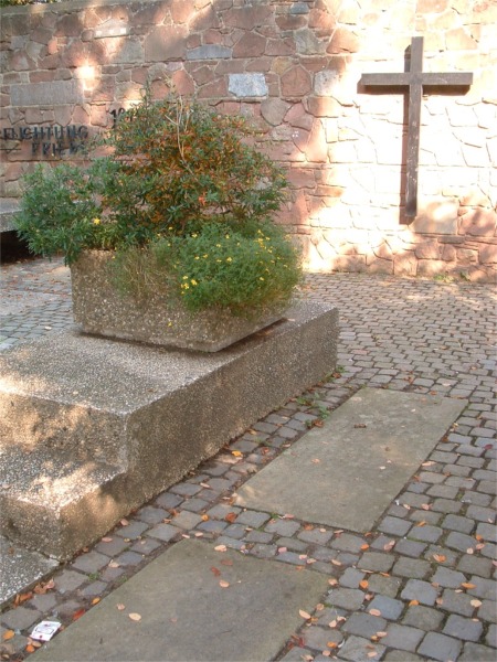 Vor dem Ehrenmal sind neben alten Grabplatten auch die Namensplatten vom alten