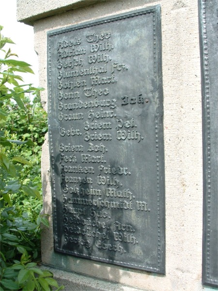 Die Ehrentafel der Vermißten und Gefallenen in beiden Weltkriegen ist der Festschrift zum 50jährigen Jubiläum der Freiwilligen Feuerwehr entnommen.