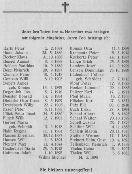 ein einziger Friedhof! | Unter den Toten des 16. November 1944 beklagen | wir