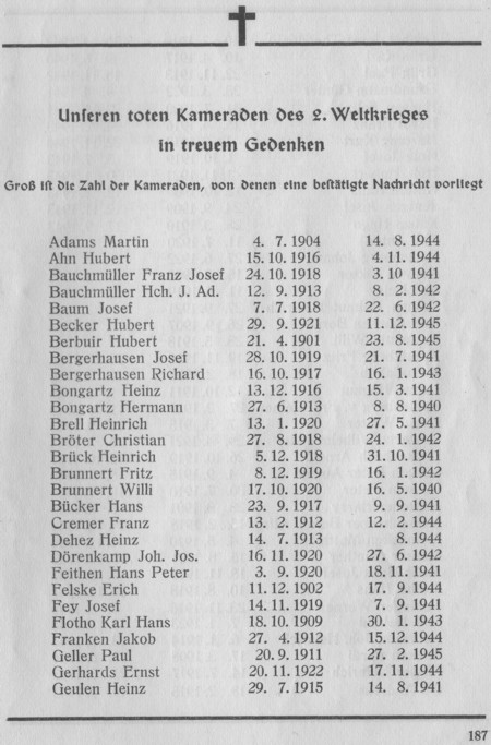 für die Kriegstoten des 2. Weltkrieges der Sportgemeinschaft Düren 1899