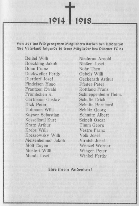 Gefallenenliste des Dürener Fußball-Club 03 (DFC 03) im Weltkrieg 1914-1918