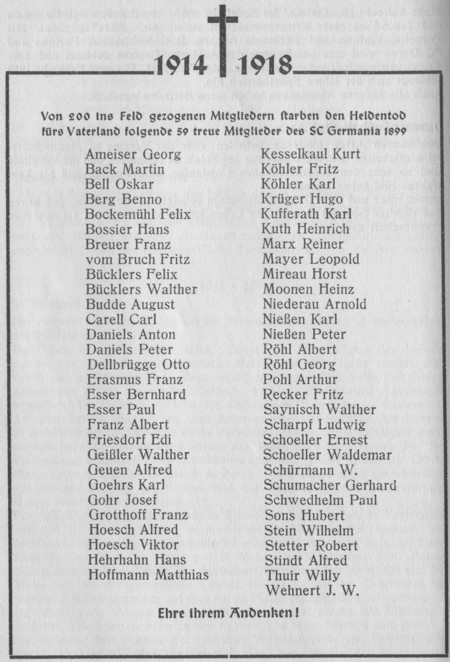 Gefallenen des Ersten Weltkrieges des SC Germania 1899