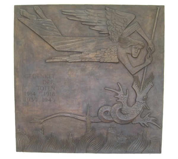 und des Neubeginnens. Die Inschrift lautet: „GEDENKET DER TOTEN | 1914 1918 | 1939 1945“