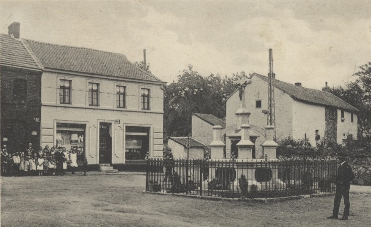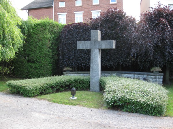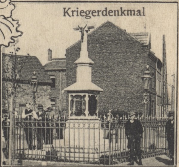 Das Kriegerdenkmal vor der Pfarrkirche St. Wendelinus stand an der Stelle der alten Hastenrather Kapelle und wurde bereits vor dem Ersten Weltkrieg errichtet. Um das Steunkreuz mit Kruzifix und aufgesetzten Tafeln entstand nach dem Weltkrieg 1914-18 ein Vorbau mit verbundenen Säulen und weiteren Gedenkplaketten. Das Denkmal wurde im Zweiten Weltkrieg zerstört.