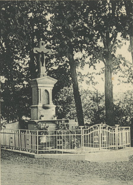 Als Kriegerdenkmal für die Gefallenen im Ersten Weltkrieg wurde ein altes Wegekreuz verwendet. Es gehörte der St.-Rochus-Schützenbruderschaft und wurde im Zweiten Weltkrieg erheblich beschädigt und mußte endgültig abgebrochen werden, als man an der Wilhelmshöhe um 1963 mit den Arbeiten für den neuen Kinderspielplatz begann. An der Astrid-Lindgren-Schule wurde ein neues Ehrenmal für die Kriegsopfer beider Weltkriege aus Hücheln / Wilhelmshöhe errichtet. Das kreuzförmige Denkmal aus belgischem Granit wurde von der Werkstatt Werner Lilienbeckers (Weisweiler) entworfen und ausgeführt und zum Schützenfest der St. Rochus Schützenbruderschaft am Samstag, 17. August 1963 eingeweiht. Die Gedenkinschrift lautet: „DIE GEMEINDE GEDENKT | DER OPFER BEIDER | WELTKRIEGE | 1914-1918 | 1939-1945“. Das steinerne Kreuz ist von einem Schriftband mit der Inschrift „FREUET EUCH + DA EURE NAMEN IM HIMMEL EINGETRAGEN SIND“ umgeben.
