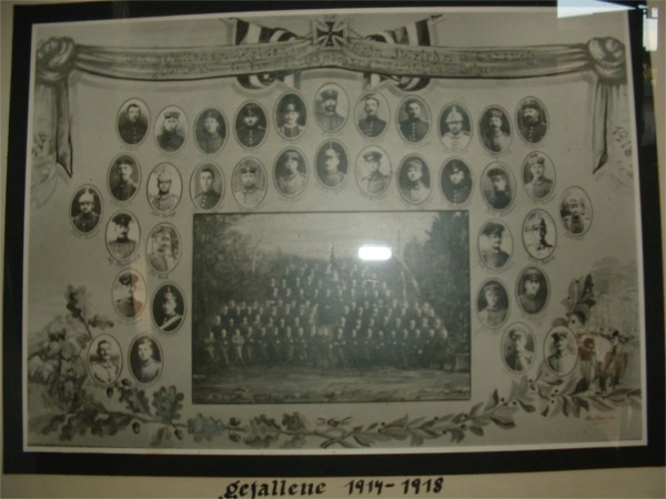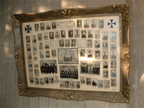 zeigt das Ehrenbild für die Gefallenen von 1914-1918, die Inschrift lautet hier: