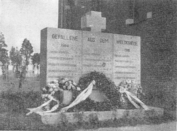 lautete: „GEFALLENE AUS DEM WELTKRIEGE 1914 1918“. Das Ehrenmal wurde
