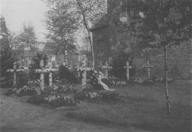 Kriegsgräbern neben der Kirche durch Pfarrer Nießen eingeweiht. Der Entwurf stammt vom Bildhauers Josef
