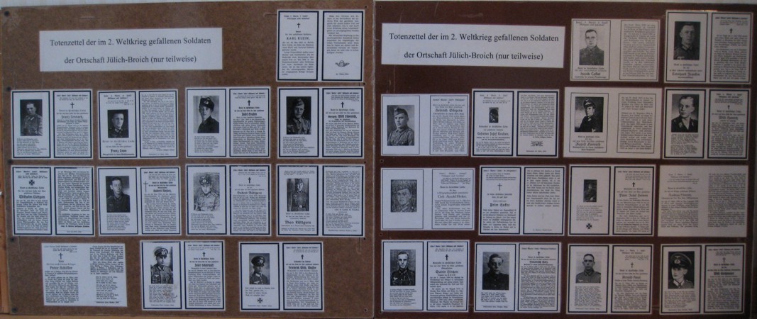 Totenzettel der im 2. Weltkrieg gefallenen Soldaten der Ortschaft Jülich-Broich (nur teilweise)