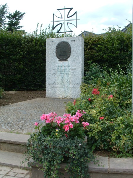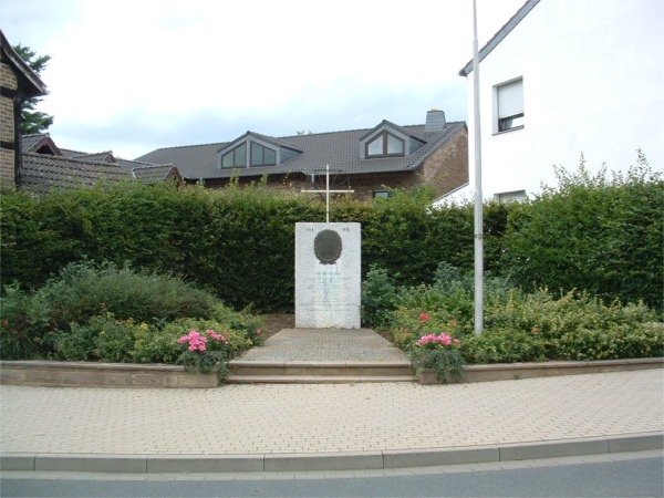 Gefallenen beider Weltkriege. Auf dem Stein wurde ein Kreuz mit den Umrissen des